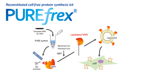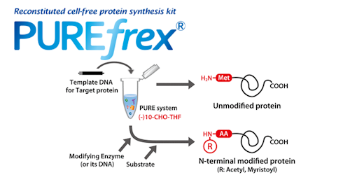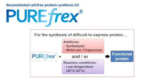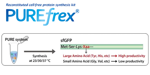 Our flagship product, PUREfrex®, is a reconstituted cell-free protein synthesis system designed for high efficiency, flexibility, and scalability, which is suitable for protein engineering, synthetic biology, and drug discovery.